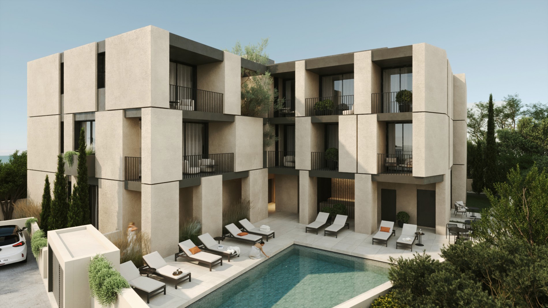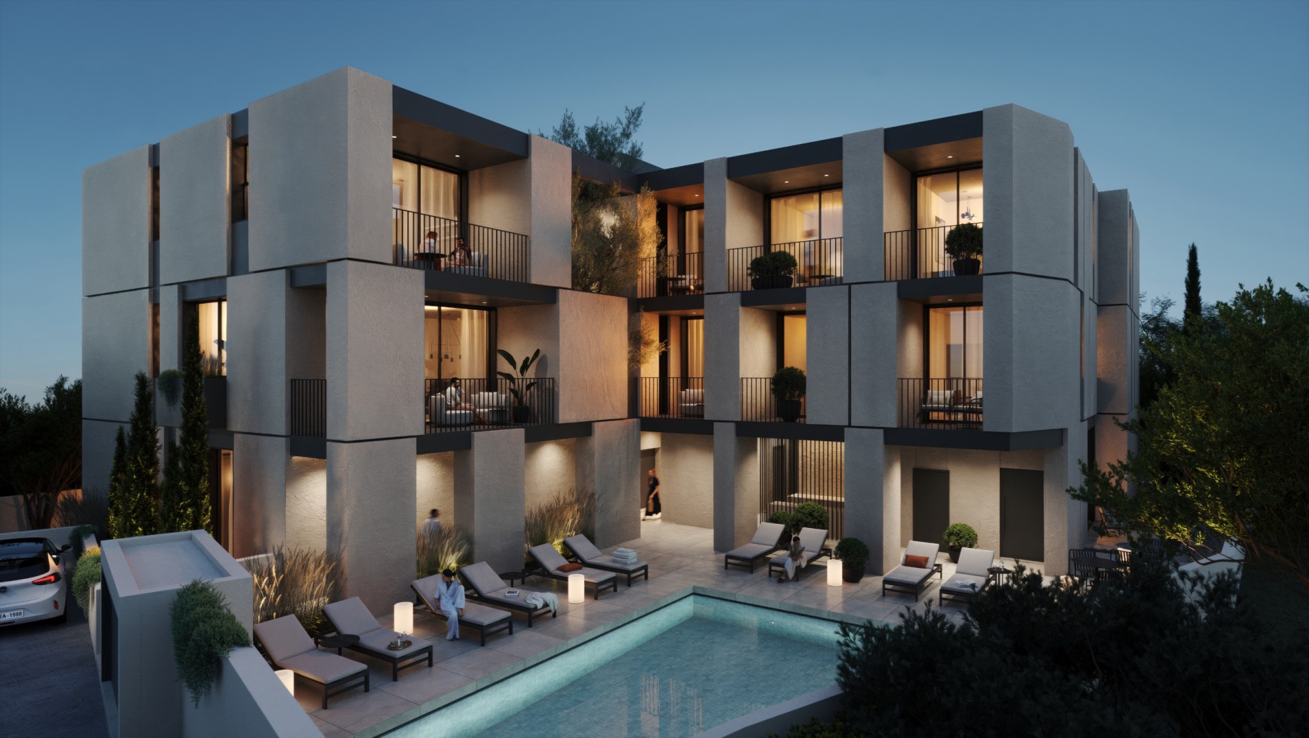 The building features 20 thoughtfully crafted homes across three floors, including 8 one-bedroom apartments, 6 two-bedroom apartments, and 6 modern studios. Each unit has been carefully designed to maximize natural light and functionality, while residents can enjoy a refreshing communal swimming pool and secure private parking. All are built with high-quality materials and finishes to ensure long-term value and durability.