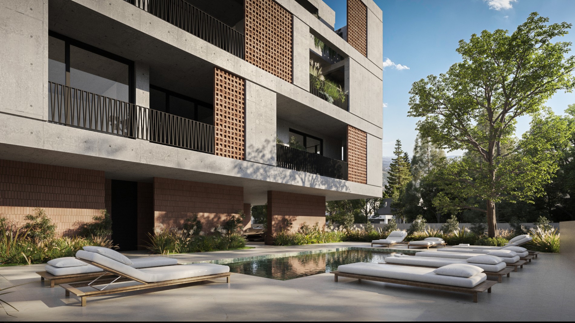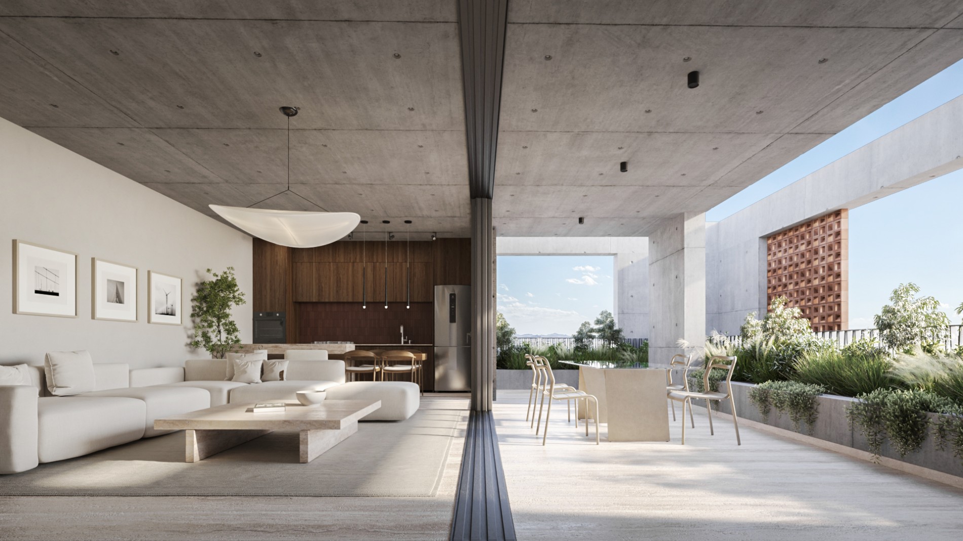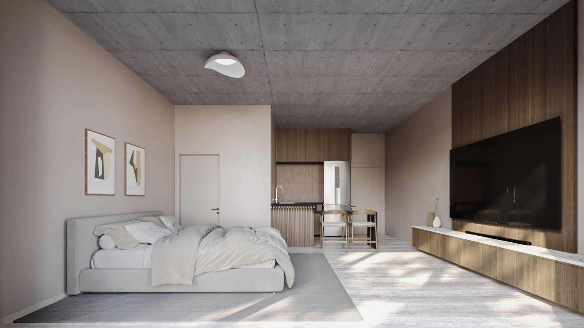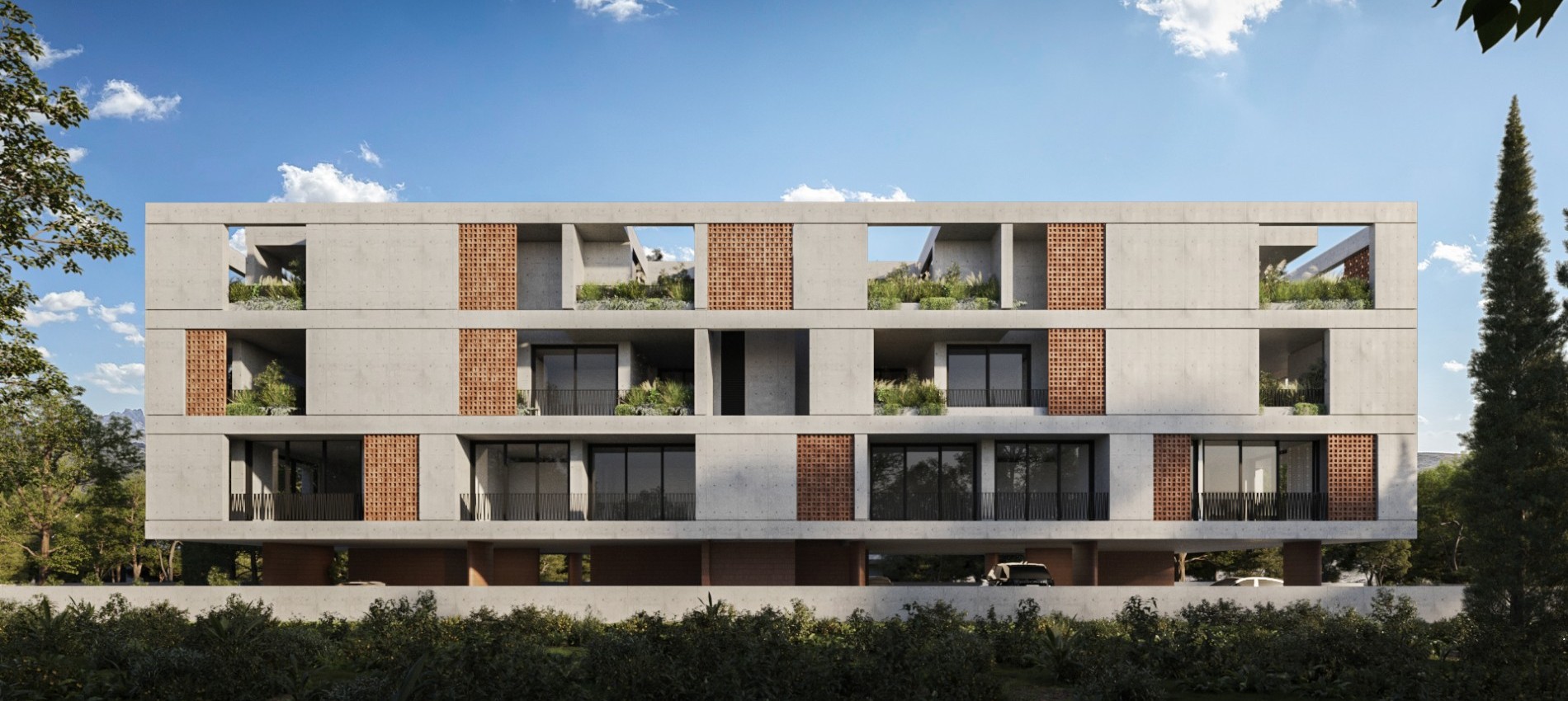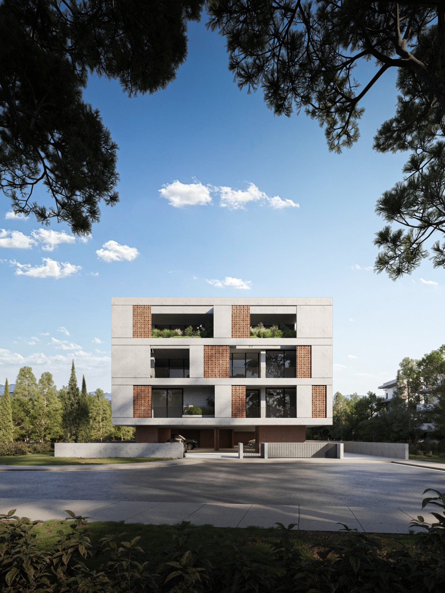 The exterior showcases a sleek fair-faced concrete finish, giving the property a clean and sophisticated character. Inside, each unit is crafted with high-quality materials and finishes, offering comfort and elegance in every detail.