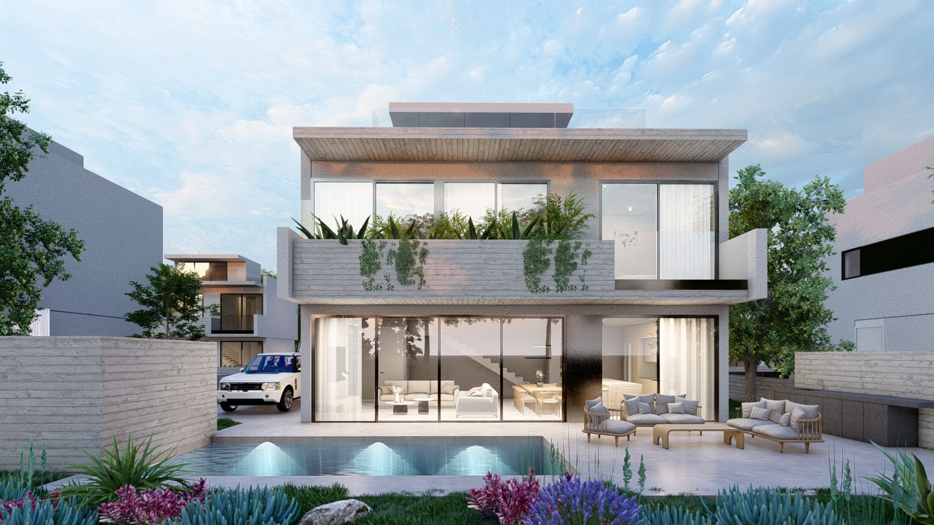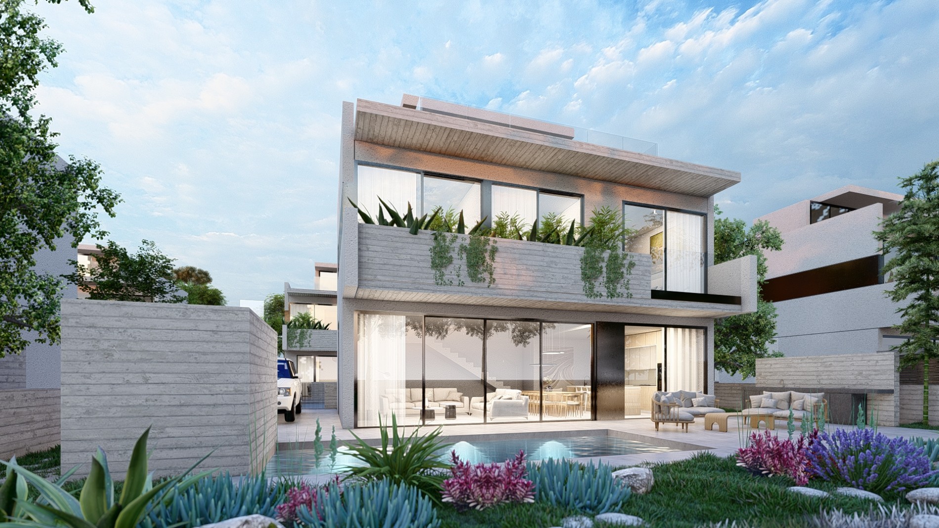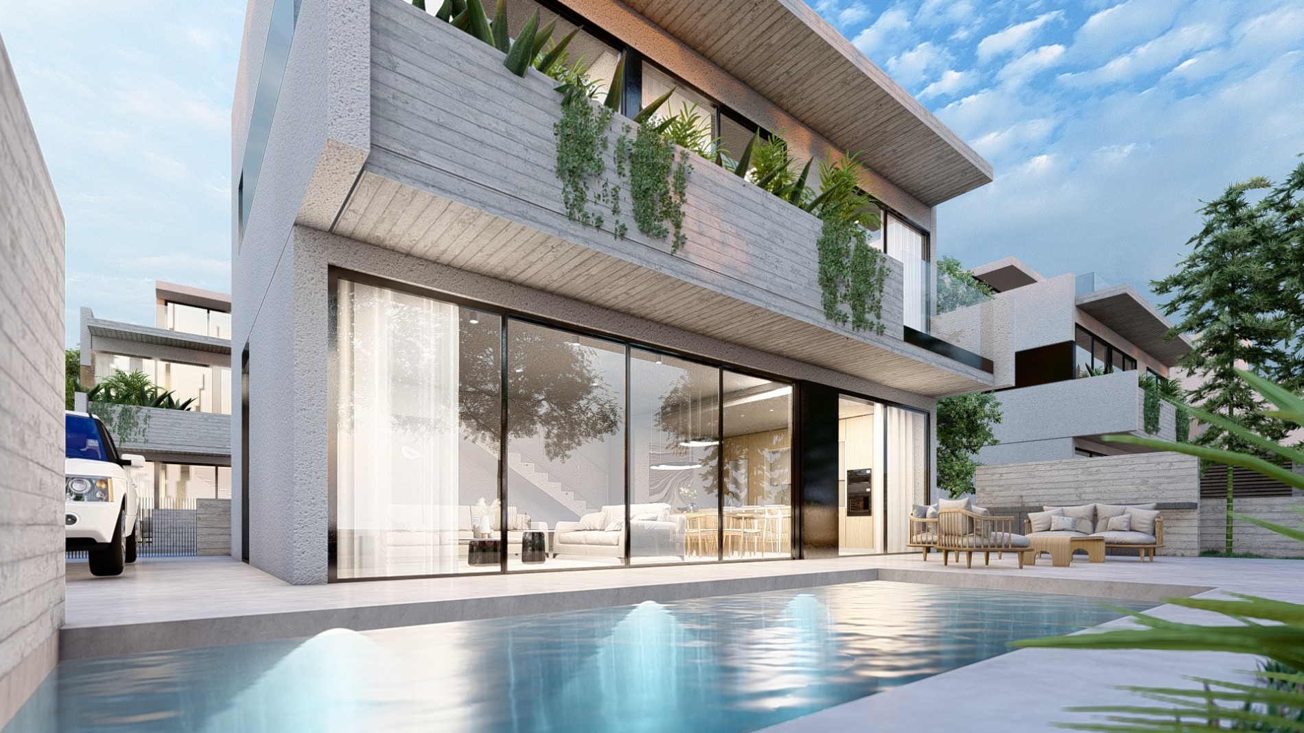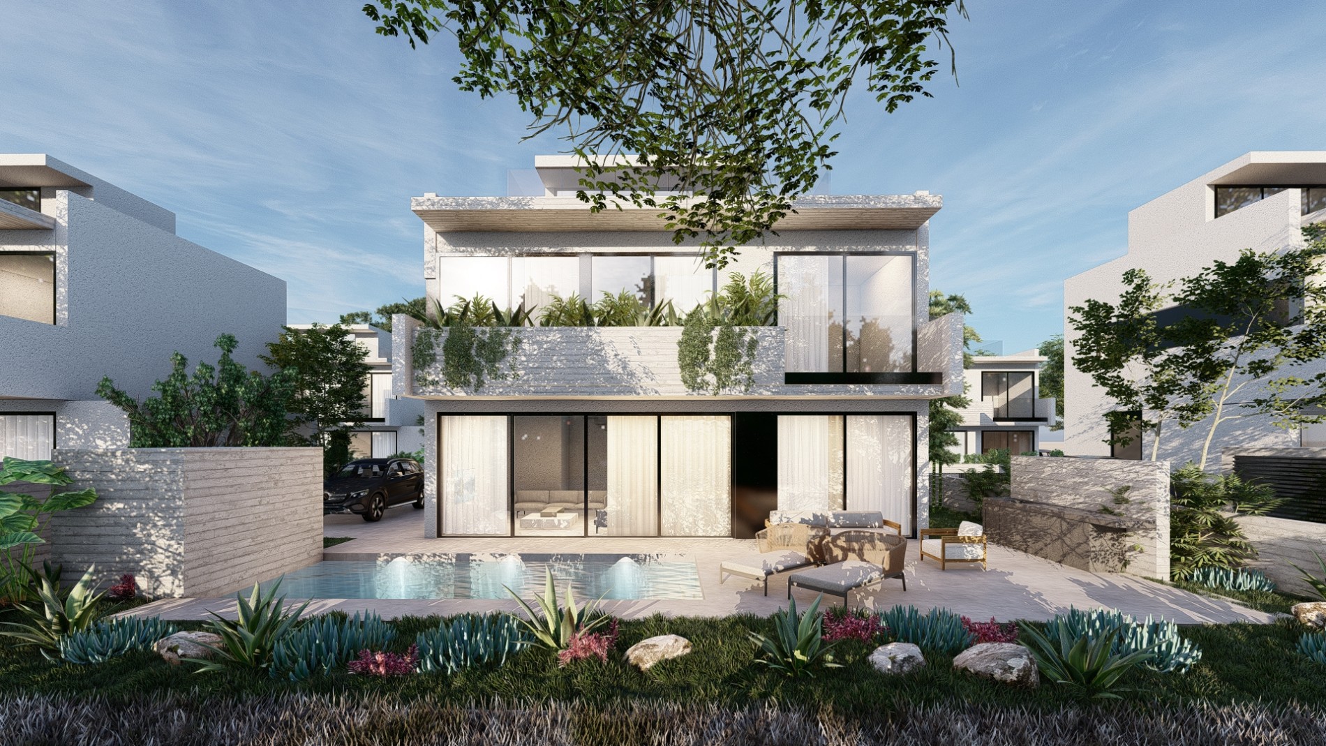 Современная архитектура и роскошные интерьеры олицетворяют современную эстетику, создавая плавный переход между закрытым и открытым пространством. Благодаря близости к морю Вы сможете насладиться успокаивающими звуками волн и освежающим морским бризом.