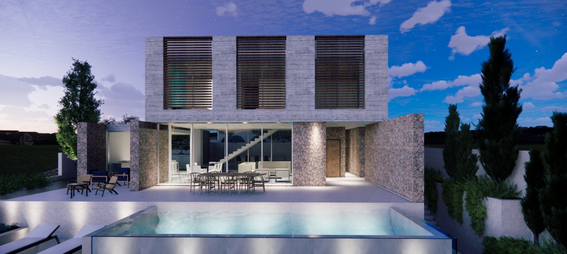 Хиллтоп Вилла оборудована четырьмя современными спальнями, тремя ванными комнатами и дополнительным гостевым санузлом. Использованием высококачественных эксклюзивных материалов, придает объекту изысканную элегантность. Отделка декоративным бетоном, каменные стены и деревянная облицовка создают глубокое ощущение эстетики и придают дому неповторимый характер.